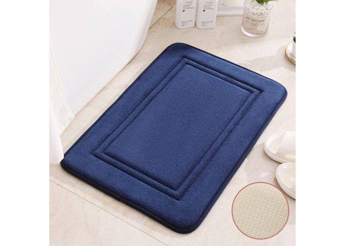 1 x Badrumsmatta med memory foam 60 x 40 cm - Halkfri - Marinblå