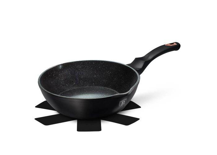 Stekpannan har en unik form patenterad av Berlinger Haus. Tack vare en speciell profil tillåter den att blanda färdiga rätter, som pasta eller grönsaker, genom att flytta innehållet på samma sätt som erfarna kockar gör.