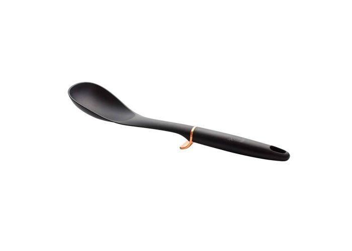 Material: Nylonplastmaterialet i denna sked är värmebeständigt och säkert att använda med non-stick kokkärl, vilket gör den till ett mångsidigt verktyg som du kan använda med tillförsikt. Dessutom tål den diskmaskin, vilket gör städningen till en lek.