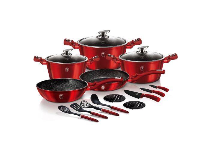 1 x Berlinger Haus - Pott- och köksset i 17 delar - El / Gas / Induktion - Burgundy Edition