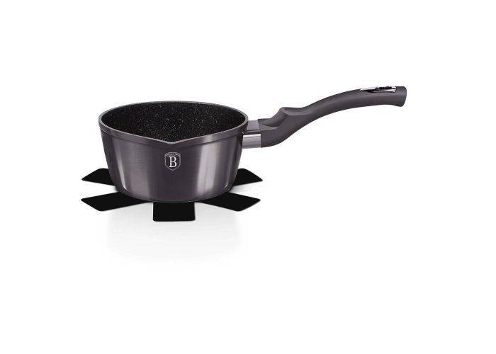 Såsgrytan i Carbon PRO-serien från Berlinger Haus är gjord av högkvalitativ gjuten aluminium belagd på insidan med en trippel granitbeläggning (marmor) med en mycket hög hårdhetskoefficient. Utvändig beläggning i grafitmetallic färg som passar perfekt in i det nordiska hemmet. Denna snygga och fashionabla panna är utrustad med ett Soft Touch-handtag (silikonhandtag) som standard.