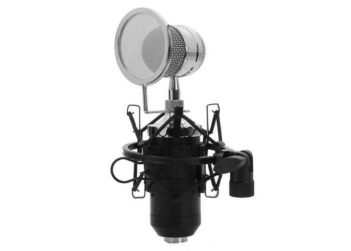 1 x BM-8000 kondensatormikrofon - 3,5 mm kontakt - med hållare - för karaoke / musik / PC-mikrofon