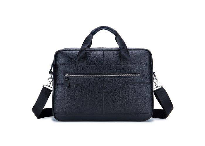 BULLCAPTAIN axel-/laptopväska i äkta läder 40,5x29cm - Svart