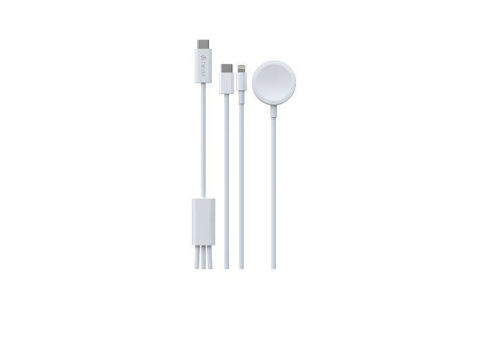 1 x Devia 3-i-1 USB-C / Lightning-kabel - med trådlös laddare för Apple Watch - Vit