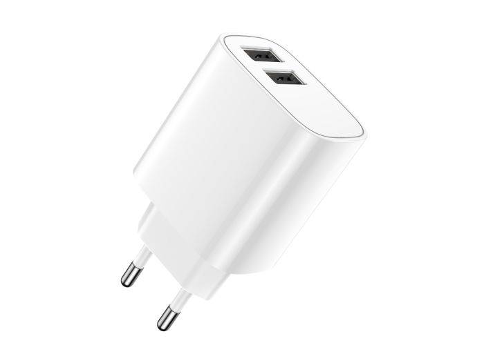 Kvalitetsadapter med två USB-ingångar så att du kan ladda två enheter samtidigt. Det finns ett inbyggt intelligent chip som automatiskt säkerställer den mest optimala laddningen för dina enheter. med en effekt på 12W och max 2,4A (max) är den perfekt för laddning av både smartphones och surfplattor och kommer att ge en snabb och effektiv laddning., och designen är lätt och kompakt och kan lätt tas med var som helst.