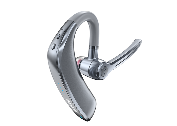 Headsetet är tillverkat av slitstarkt ABS-material i grå färg. Den är smal och därför diskret. Det ser elegant ut på örat, det kommer att vara perfekt för arbete eller studier.