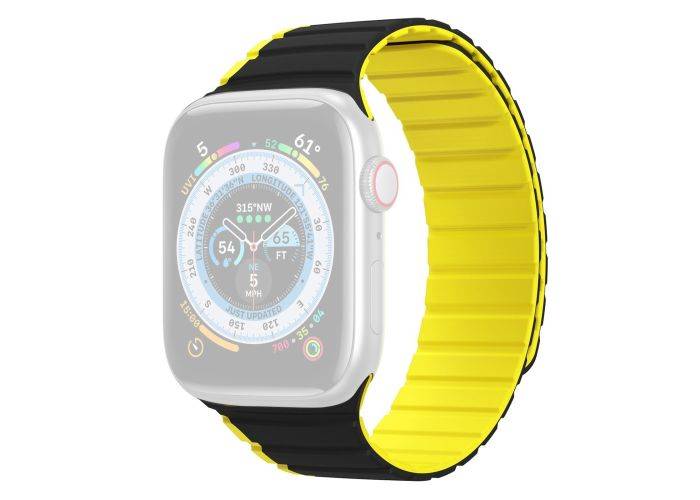 Dux Ducis LD Series - Apple Watch 9/8/7/6/5/4/3/2/1/SE/Ultra/Ultra 2 - 49/45/44/42mm - Magnetisk silikon armband - Svart/gul