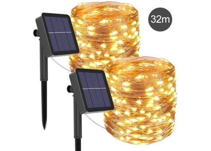 1 x Fairy Outdoor LED-ljuskedja med SOLCELLER - 300 LED-lampor / 32m - Varmvitt