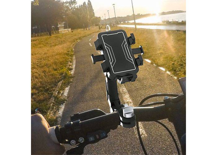 Supersnygg hållare för skoter, elcykel och cykeln, specialdesignad för montering på sidospegel, denna hållare erbjuder flexibilitet utöver det vanliga, du kan ställa in armen i önskad vinkel och du har möjlighet att rotera hållaren både horisontellt och vertikalt , gör du alltid detta kan få den mest optimala siktlinjen, och det är lättare att använda telefonen handsfree medan du kör.
