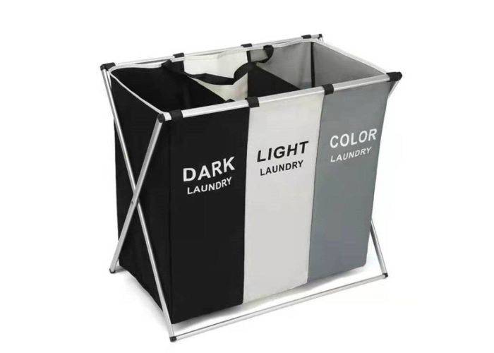 Supersmart tvättkorg i kvalitetsmaterial, du får gott om plats för tvätten och detaljerna är genomtänkta och den är uppdelad i 3 fack så du enkelt kan sortera i t.ex. mörka och ljusa färger. Designen är vikbar, så när den inte används tar den ingenting i väskan och det finns även ett påsytt handtag i kraftigt konstläder för enkel transport.