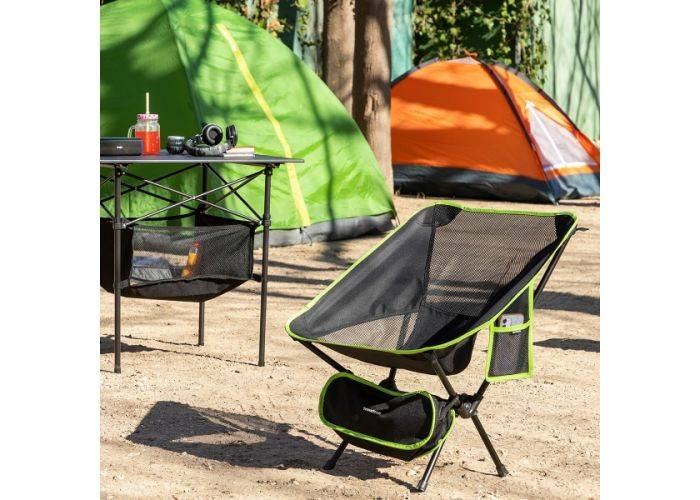 Denna hopfällbara campingstol är en perfekt följeslagare för alla slags utomhusaktiviteter. Den fälls lätt ihop och innehåller en bärväska. Den har en ficka samt är ergonomisk, andningsbar, ultralätt, motståndskraftig och stabil. Tål 120 kg.