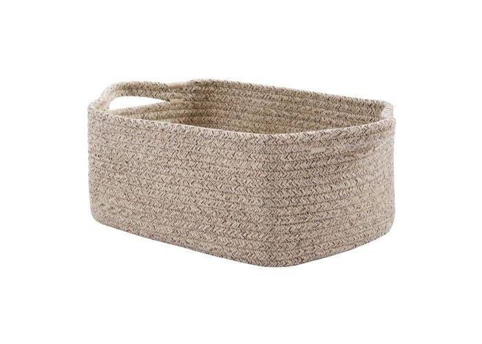 Snygg förvaringskorg med handtag, tillverkad av premium bomullsrepmaterial som är mjukt och slitstarkt och den är hopfällbar, lätt att förvara när den inte används