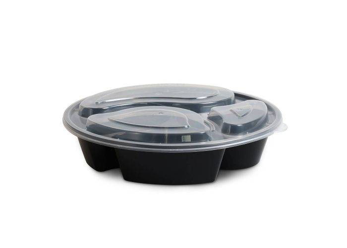 Återanvändbar matlåda med tre fack och lock 1 L / Ø22 cm - 5 st.