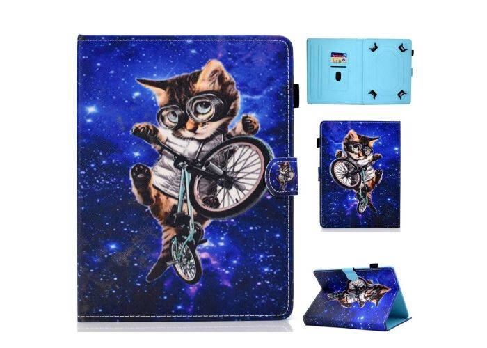 Universal iPad/tablet läderfodral 9-10.1" - Med korthållare - Cyklende katt