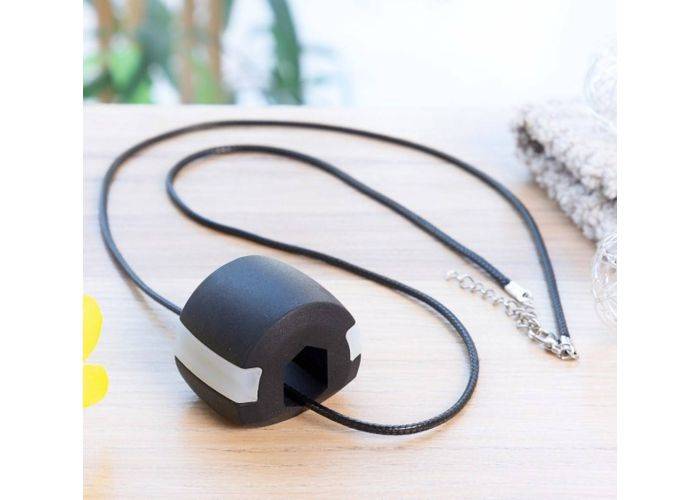 Käktränaren, som är extremt lätt att använda. Följ bara de medföljande instruktionerna. Innan du använder den för första gången, lägg den i kokande vatten i 20 sekunder, låt den svalna och håll den mellan tänderna så att käktränaren anpassar sig efter ditt bett. När den sitter korrekt, gör repetitiva rörelser med käken. Apparaten måste tvättas och torkas noggrant efter användning.