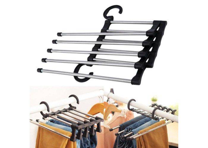 Klädstång/ organizer för byxor till garderob - rostfritt stål / Svart