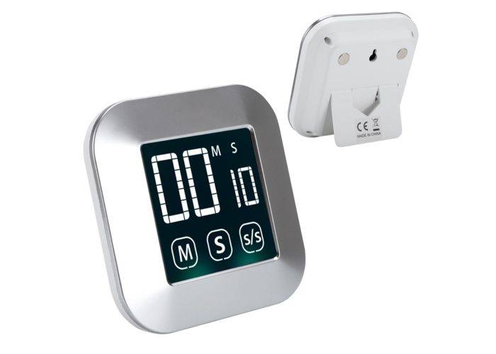 Snyggt designad digital köksklocka med magnetisk baksida så att du kan fästa den på metallytor, till exempel kylskåp, eller så kan du använda stativet och ställa den på bordet. Med pekskärm är klockan dessutom väldigt användarvänlig att använda.