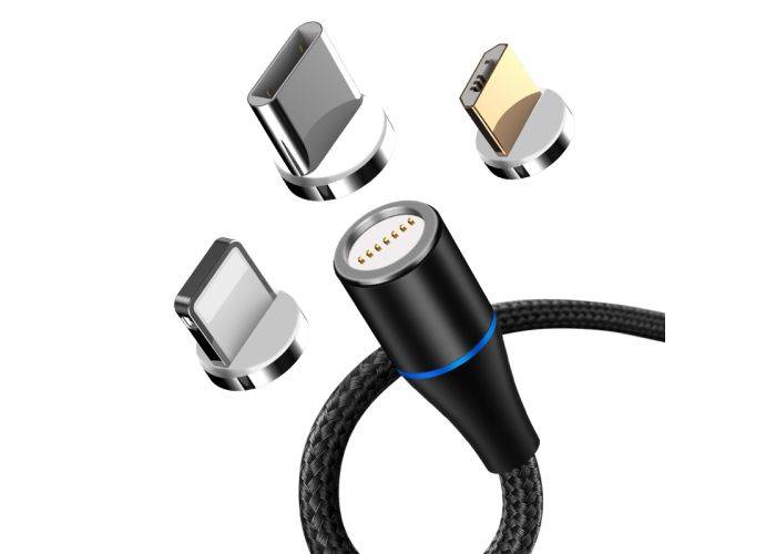 1 x Maxlife 3-i-1 magnetisk laddningskabel 3A/15W - Lightning / USB-C / microUSB - 1 m