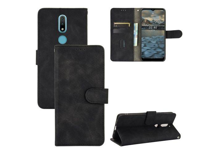 Nokia 2.4 - Classic Läderfodral / Plånboksfodral - Svart