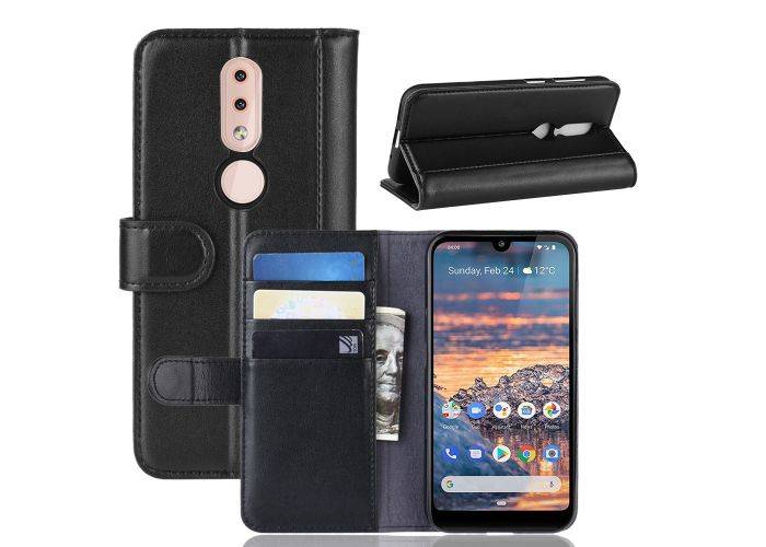 Nokia 4.2 - Äkta Läderfodral / plånboksfodral - Svart