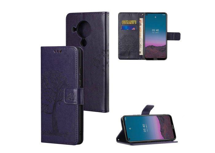 Uggelmönster Utskrift Design Läderplånboksfodral till Nokia 5.4 - mörkblå