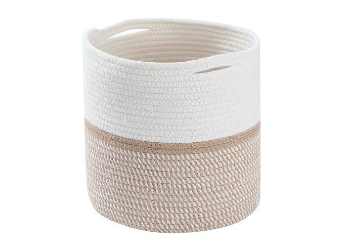 Snygg förvaringskorg med handtag, tillverkad av premium bomullsrepmaterial som är mjukt och slitstarkt och kan användas för många ändamål