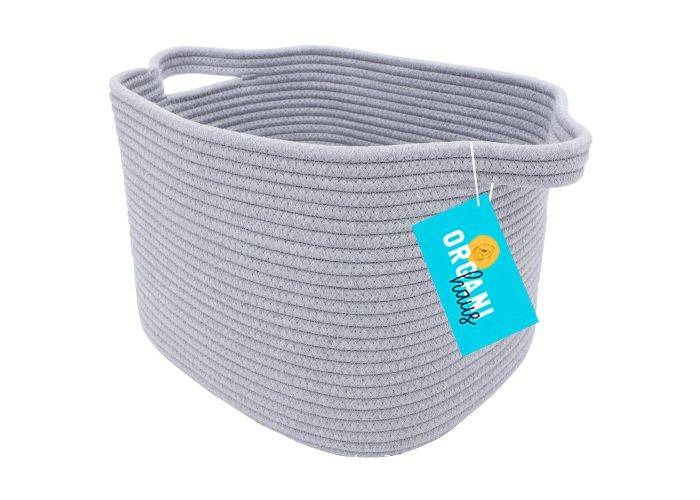 Snygg förvaringskorg med handtag, tillverkad av premium bomullsrepmaterial som är mjukt och slitstarkt och den är hopfällbar, lätt att förvara när den inte används