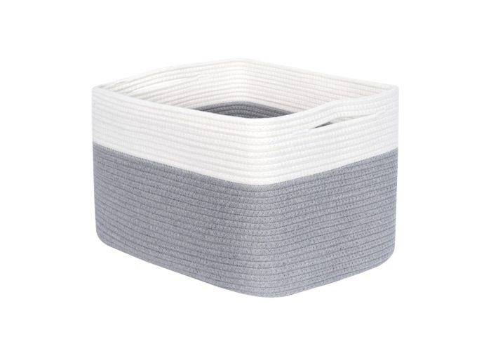 Snygg förvaringskorg med handtag, tillverkad av premium bomullsrepmaterial som är mjukt och slitstarkt och den är hopfällbar, lätt att förvara när den inte används