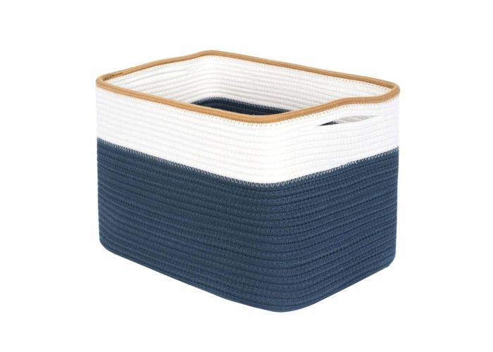 1 x Förvaringskorg / Tvättkorg i Bouldsreb - 38 x 25,4 x 25,4cm - Vit/Navy