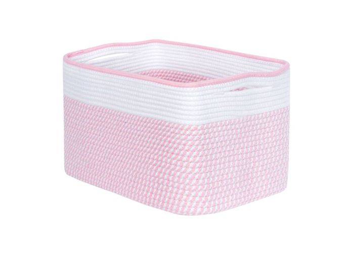 1 x Förvaringskorg / Tvättkorg i Bouldsreb - 38 x 25,4 x 25,4cm - Vit/Rosa