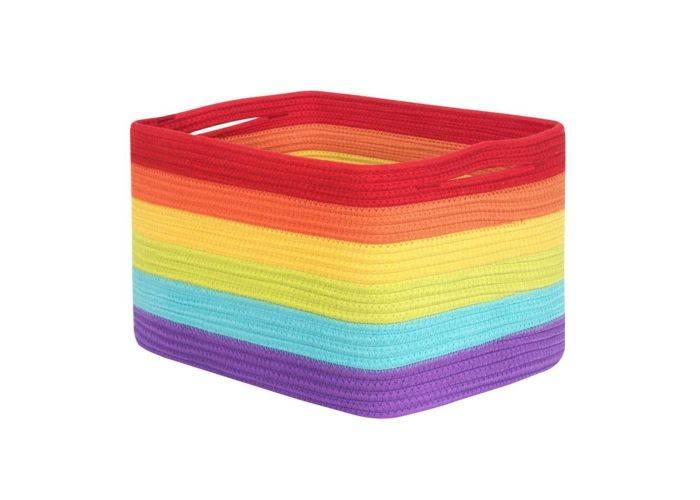 1 x Förvaringskorg / Tvättkorg i Bouldsreb - 38 x 25,4 x 25,4cm - Regnbåge