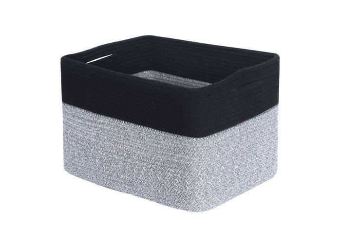 1 x Förvaringskorg / Tvättkorg i Bouldsreb - 38 x 25,4 x 25,4cm - Svart/Ljusgrå