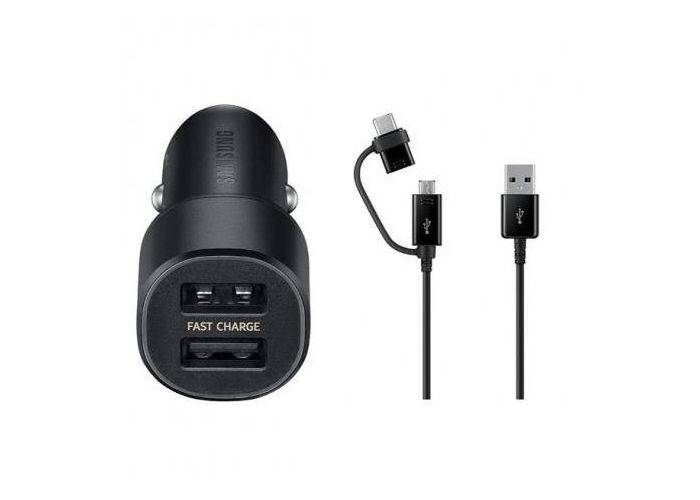 Med denna Original Samsung billaddare kan du ladda två enheter samtidigt och med en effekt på upp till 15W kan du ladda både de senaste smartphones och surfplattor. Den medföljande kabeln är i 2-i-1 design och du kan ladda enheter med både USB-C och microUSB, det ger dig fler alternativ.