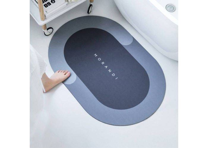 1 x Oval badrumsmatta 70 x 45 cm - Snabbtorkande - Halkfri - Blå
