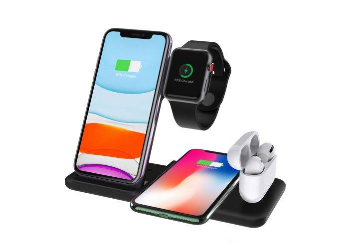 Q20 - 4-i-1 design trådlös snabbladdare för smartphone/Apple Watch/Airpods - Svart