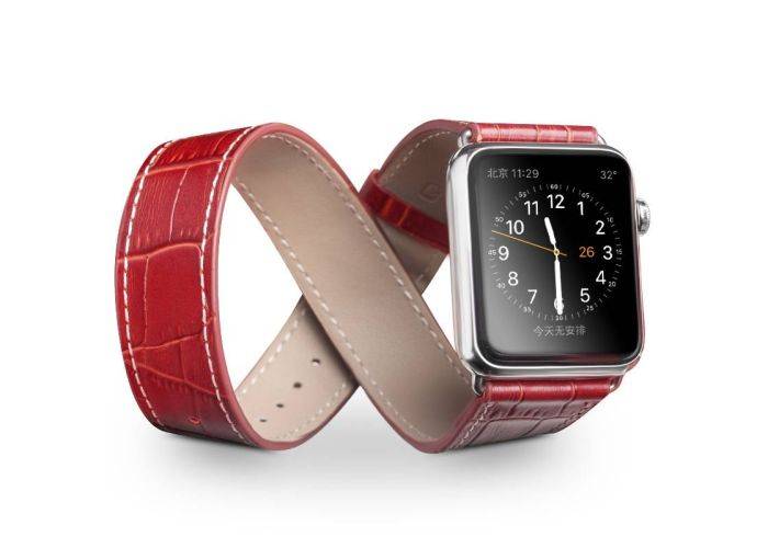 QIALINO Crocodile - Apple Watch 45/44/42mm Double Loop Series 8/7/6/5/4/3/2/1/SE / Watch Ultra 49mm - Äkta läderrem - Röd