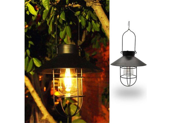 Retro Solar Lantern lampa i metall med krok - Svart - Varm belysning