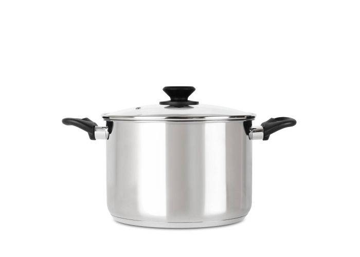 Stor kvalitetsgryta på 10 L som kommer med glaslock med ånghål och vackra ergonomiska handtag. Den passar alla spistyper och kan tvättas i maskin.