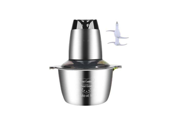 Denna elektriska hackare maler, hackar, blandar, knådar och krossar helt enkelt allt. Vi pratar om mirakelvapnet för vilket kök som helst. Oavsett om du är en ivrig hobbykock eller en nybörjare i köket, kommer denna kraftfulla kökshjälp att göra ditt liv mycket enklare. Den kombinerar flera köksmaskiner i en. Att laga mat kan vara så enkelt! De 2 knivarna är gjorda av rostfritt stål och är slipade, kraftfulla och starka. Du kan skära en mängd olika livsmedel på nolltid, vilket sparar tid för att skära. Du behöver inte använda en kökskniv. Tryck bara på en knapp och maten kan skivas på några sekunder. Dess containerkapacitet är perfekt för 2-6 personer, lämplig för hemmabruk. Lätt att underhålla då den är gjord av högkvalitativt rostfritt stålmaterial och är lätt att rengöra. Skölj bara av den med vatten och torka av den med en trasa. Hackaren kan hacka många livsmedel, inklusive grönsaker, frukt och kött. Du kan använda den för att göra kalkonfyllning, sallad, sås, barnmat och så vidare.