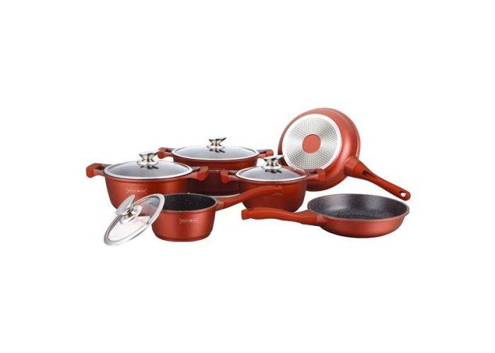 1 x Royalty Line Gjut aluminium Grytset i 10 delar - Alla typer av spisar - Bourgogne