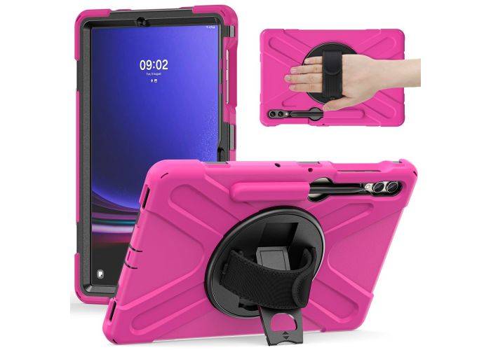 Samsung Galaxy Tab S9 Plus / Tab S8+/S7+/S7 FE - Armor Hybrid skal - 360 grader roterbar - Rosa