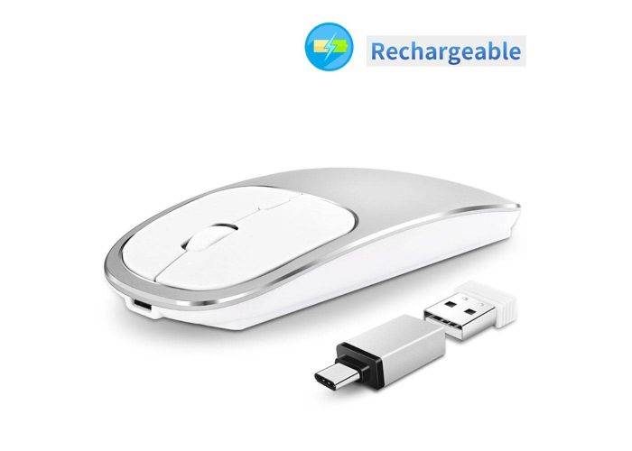 Optisk trådlös mus av hög kvalitet i en snygg och tunn design och gjord så att den är väldigt tyst under användning. Du ansluter den här musen via 2,4 GHz-nätverk och en USB-mottagare ingår som kan anslutas antingen via USB-ingång eller via Typ-C-ingång, som också levereras med en Typ-C-adapter för detta, så att du har stor flexibilitet att använda. När du laddar musen kan du få upp till 500 timmars batteritid.