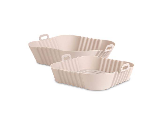 Fyrkantiga silikonformar som är lämpliga att använda i airfryer eller ugn. Setet innehåller två delar i olika storlekar