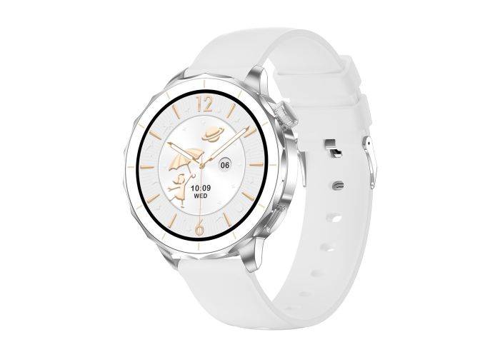 Klockan har en 1,32-tums AMOLED-pekskärm med 466×466 upplösning, vilket säkerställer skarpa och tydliga visningar av data, aviseringar och appar. Det eleganta silverfärgade boetten och det bekväma armbandet gör klockan idealisk för både vardag och sport, och armbandet kan enkelt anpassas eller bytas ut för att passa din stil.