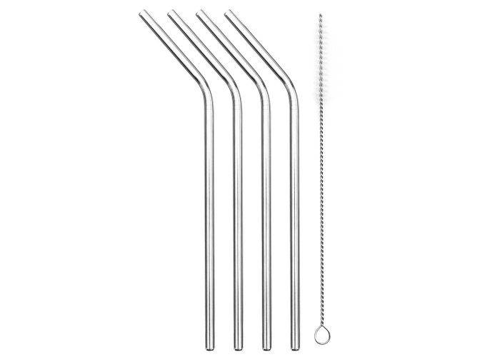 sugrör i rostfritt stål (4 stk.) Inkl borsta til rengöring - Återanvändbar och miljövänlig - Silver