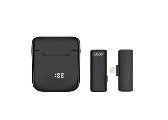 Trådlös Lavalier-mikrofon med Clip - Med Lightning-kontakt och laddbox - Svart