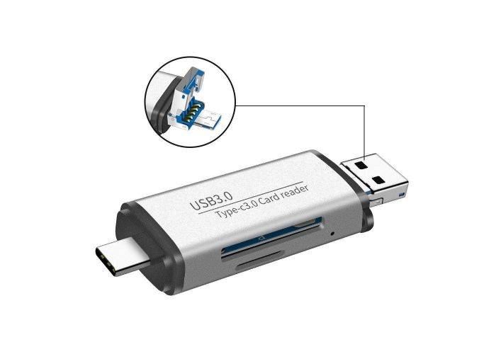 Type-C / mikroUSB / USB 3.0 - 3-i-1 - SD / mikroSD TF Kortläsare