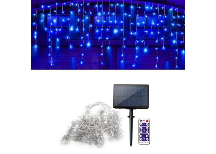 Utomhus LED-ljuskedja med SOLCELLER - Med fjärrkontroll & timer - 300 LED-lampor / 10m - Blå