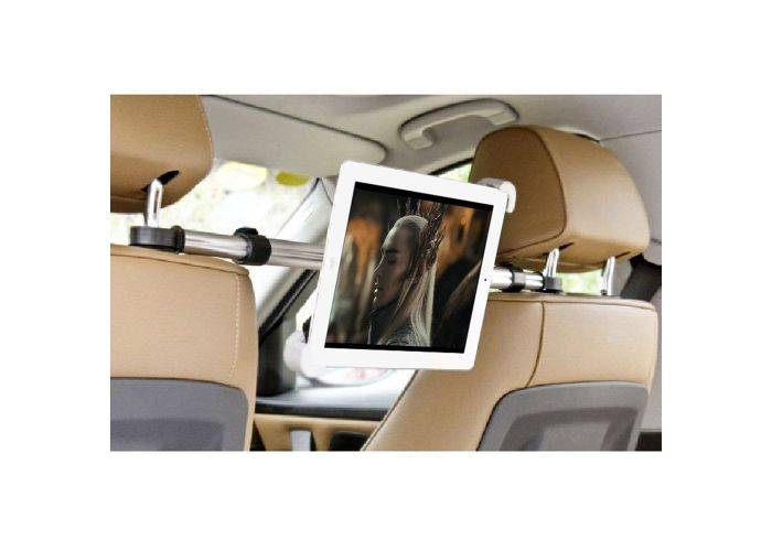 Universalhållare för din iPad/surfplatta, med denna hållare kan baksätet förvandlas till en biograf och körningen kommer att verka kortare för dina barn. Du kan fritt flytta din surfplatta eller fixera den i en viss position, och du kan även justera vinkeln 360 grader. Placera din enhet i fästet och se till att den är ordentligt fastklämd, justera sedan för bästa betraktningsvinkel.