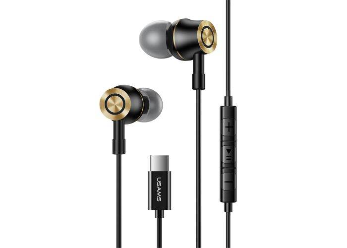 USAMS Hörlurar med USB-C - Kabel 1,2m - Vattentät/svettsäker - Svart